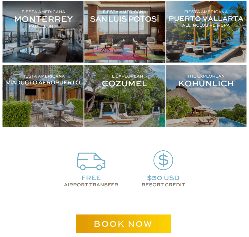 For limited time receive up to 50% off plus 15% off rate. Offer valid on new bookings between January 9, 2023 through March 31, 2023. Traveling between January 9 through December 31, 2023. Complimentary round-trip airport transfers available at Live Aqua Beach Resort Punta Cana (at PUJ), Live Aqua Beach Resort Cancún, Grand Fiesta Americana Los Cabos All Inclusive Golf & Spa, Grand Fiesta Americana Coral Beach Cancún All Inclusive Spa Resort, Fiesta Americana Condesa Cancún All Inclusive, Fiesta Americana Puerto Vallarta All Inclusive & Spa. Bookings at 1 800 FIESTA 1 or at lacoleccionresorts.com. All bookings are subject to availability and must be made in advance. Offer is not valid for groups/conventions. Existing closed out and blackout dates remain applicable and does not apply for groups. Grupo Posadas (La Colección Resorts) reserves the right to terminate or modify this promotion at any time. Previous reservation is required. Blackout dates may apply. Other restrictions may apply.